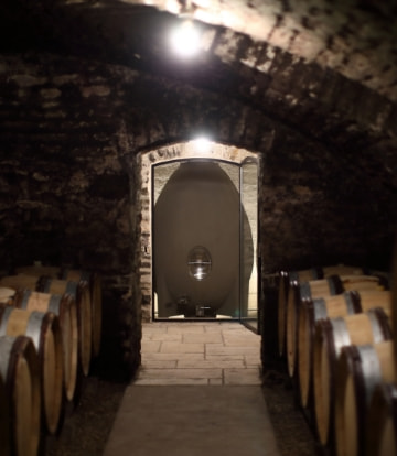 qui magnifie les arômes, affine la tension et les textures du jus. Les vins passent d’abord en fûts de chêne, avec une proportion précise de fûts neufs, pour sublimer la rondeur, sans marquer le vin d’une note boisée prégnante. Puis, les vins blancs évoluent un an dans des œufs béton, qui favorisent le lent mouvement des jus, et leur contact nourricier avec les lies. Les vins rouges bénéficient d’un traitement similaire dans des foudres de grande capacité.